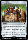 Wizard's Rockets enters the battlefield tapped. , , Sacrifice Wizard's Rockets: Add X mana in any combination of colors. When Wizard's Rockets is put into a graveyard from the battlefield, draw a card.