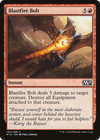 Blastfire Bolt deals 5 damage to target creature. Destroy all Equipment attached to that creature.