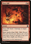Fiery Fall deals 5 damage to target creature. Basic landcycling (, Discard this card: Search your library for a basic land card, reveal it, put it into your hand, then shuffle.)