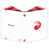 This 9-Pocket PRO-Binder for Magic: The Gathering features a white leatherette material with the iconic red Mountain symbol and matching red elastic strap. Store and protect up to 360 standard size trading cards double-sleeved in Ultra PRO Deck Protector® sleeves. Each pocket page is backed with a low-friction, red material to give cards a classic, framed look. Side-loading pockets and low-friction material help keep cards in place. All materials are archival-safe, acid-free, and non-PVC for premium protection.