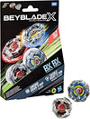 INTERCHANGEABLE DIE-CAST BLADES: Includes Takara Tomy-designed Beyblade X top with authentic die-cast metal parts: Tackle Goat 2-70N BX Right-Spin Defense Type and Sword Dran 3-60F BX Right-Spin Attack Type