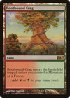 This land enters tapped unless you control a Mountain or a Forest. : Add or .