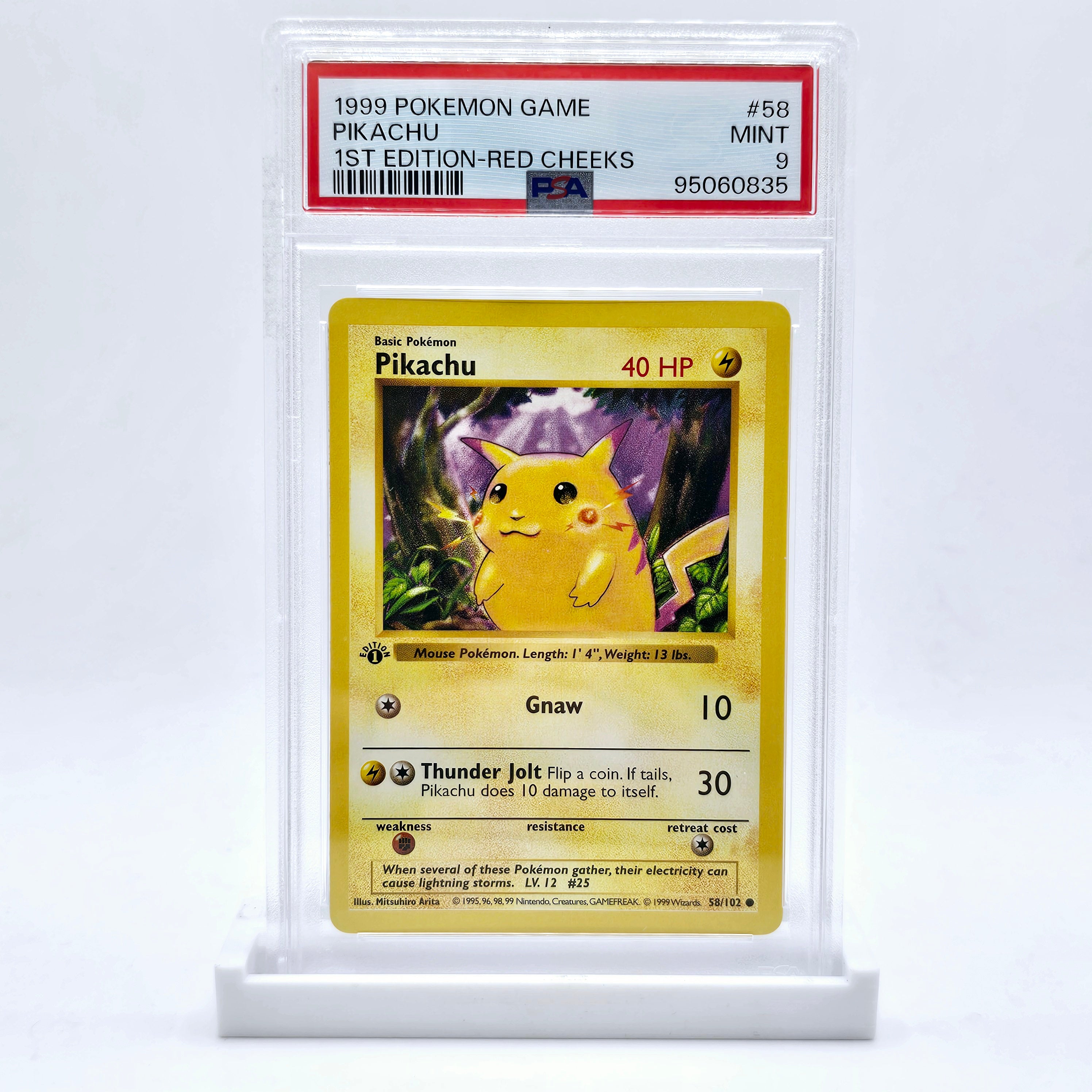 PSA 9 Pikachu Base Set 1st Edition - Red Cheeks Thick Stamp