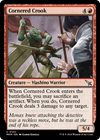 When Cornered Crook enters, you may sacrifice an artifact. When you do, Cornered Crook deals 3 damage to any target.