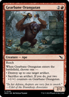 Reach When Gearbane Orangutan enters, choose one — • Destroy up to one target artifact. • Sacrifice an artifact. If you do, put two +1/+1 counters on Gearbane Orangutan.