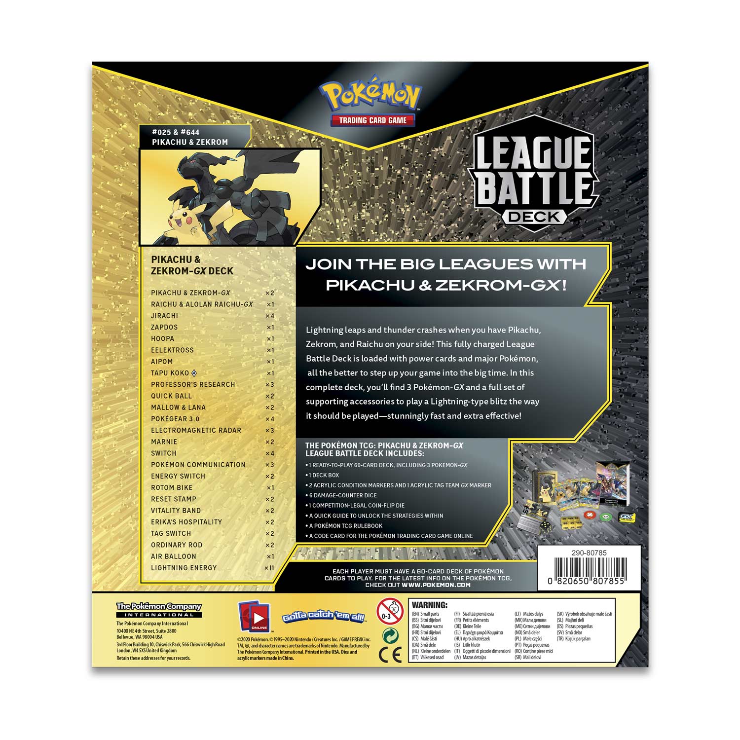 The Pokémon TCG: Pikachu & Zekrom-GX League Battle Deck includes: